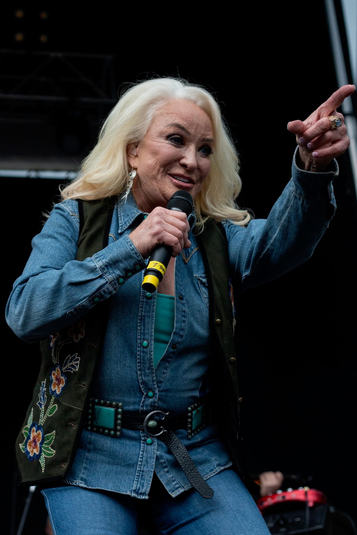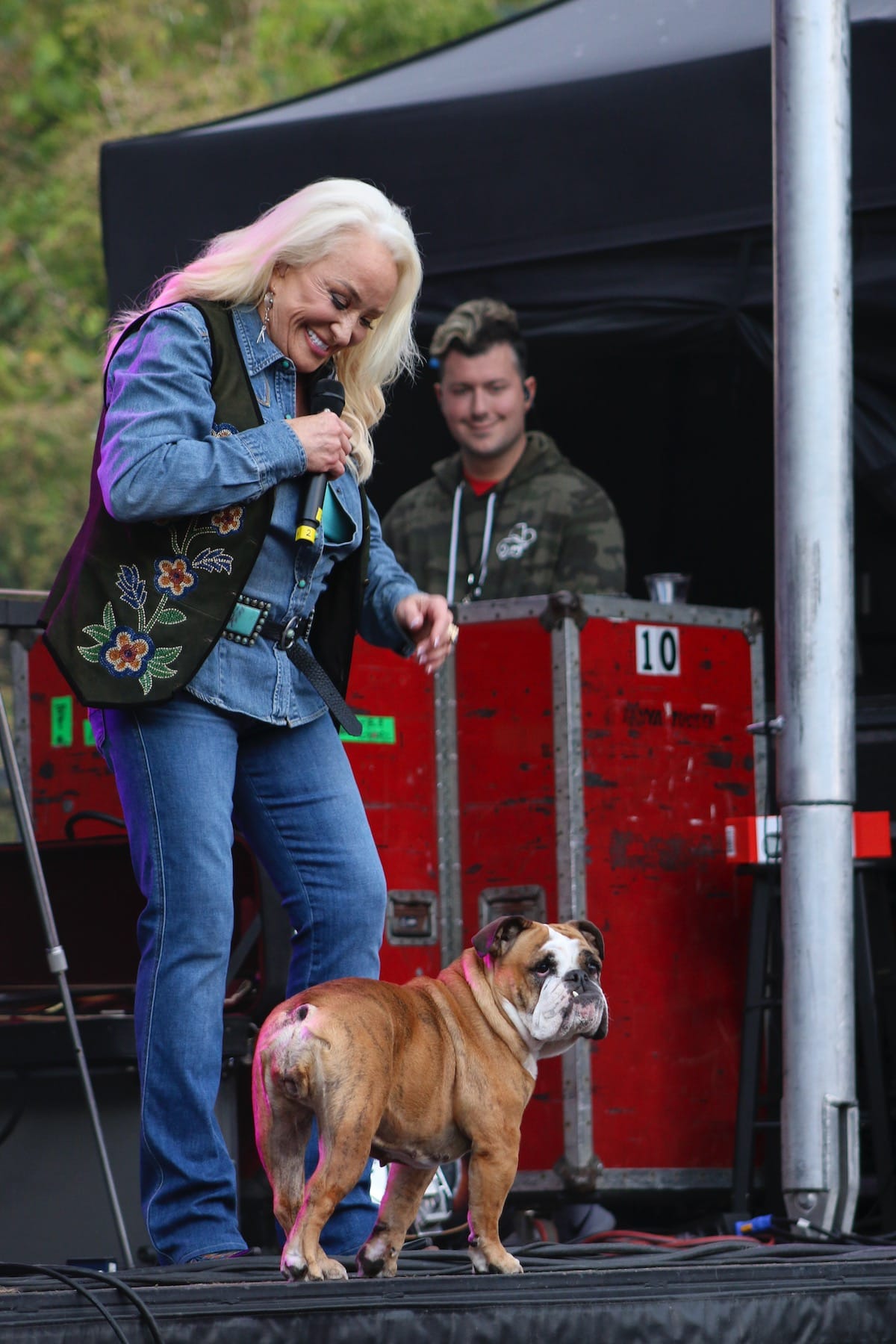 Tanya Tucker: It’s hard to think of a better festival closer than Tanya Tucker (TANYA MOTHER TUCKER, according to the T-shirt I bought). She’s got enough hits to go for hours, and the energy for that too. Between classics like “Love Me Like You Used To” and “Texas (When I Die)” and of course “Delta Dawn,” plus songs from her Grammy-winning 2020 album While I’m Living (ND review), Tucker sang the praises of stretch jeans, downed a few shots of tequila (and passed one to a photographer in front of the stage), and loved on her bulldog, Stella, who joined her onstage mid-set. — Stacy Chandler
