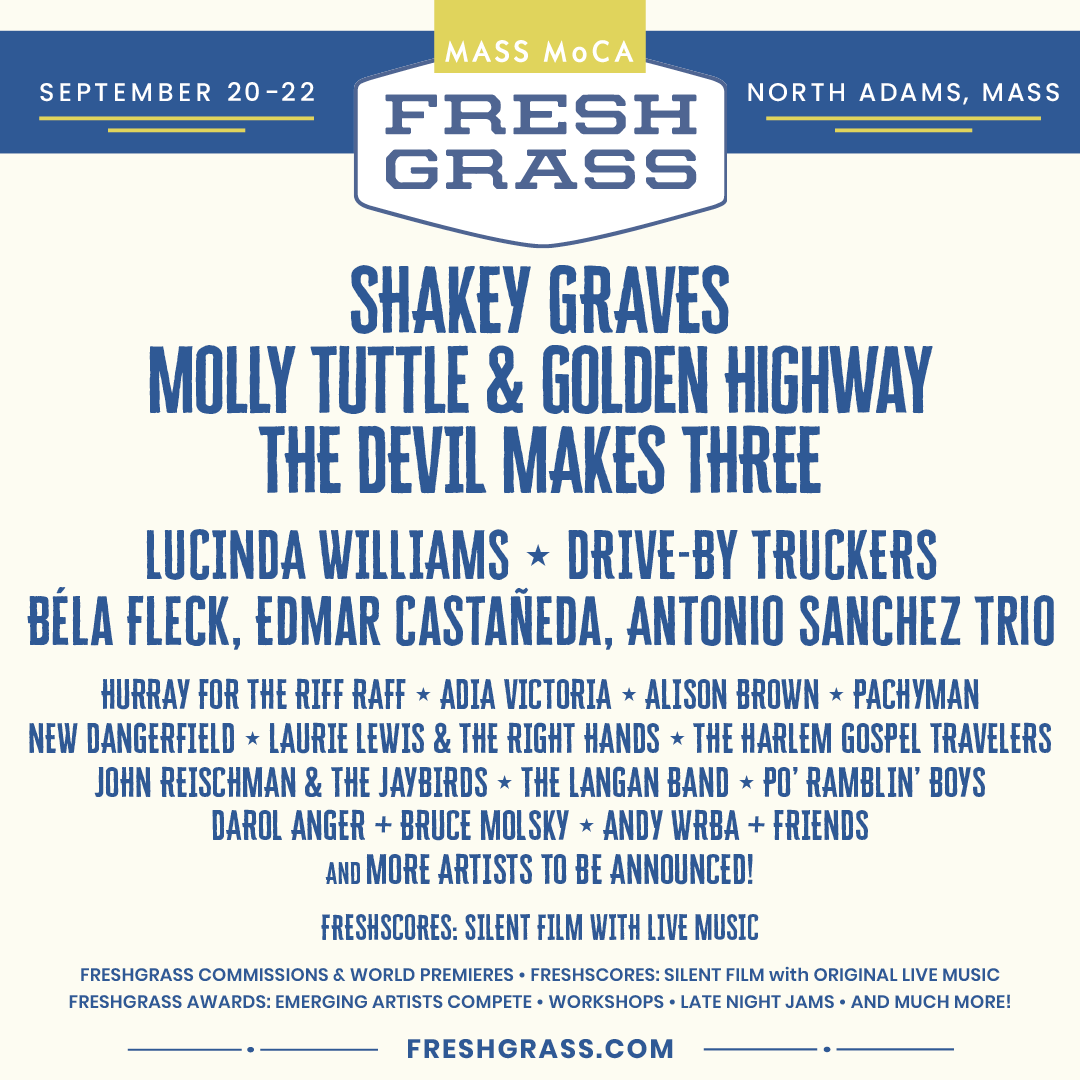Tickets for FreshGrass Festival | North Adams (as well as FreshGrass | Bentonville, which takes place in Arkansas May 19-20 at The Momentary) are available here. Stay tuned via No Depression or at the FreshGrass festival website for more information to come about FreshGrass festival lineups, commissions, awards, event logistics, and more.