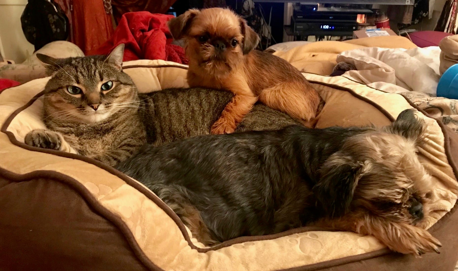 As Buddy tells us, “We have had many animals in our family … Winkie, Tinkie, Amos, PeeWee, BigHead, Hoboken, Toe, Mama, Peepo, Mudpie, Nanie, KittyMan, Tousie, and Hooray. I’ve maybe forgotten a few. The dogs love the cats and the cats love the dogs.”