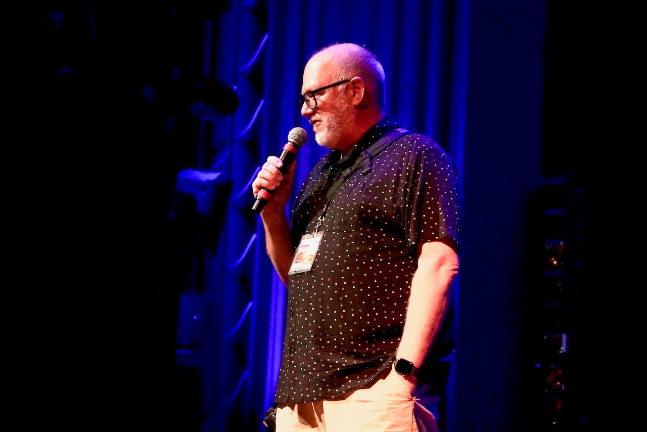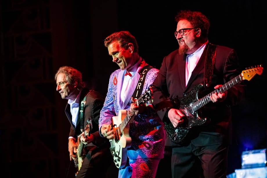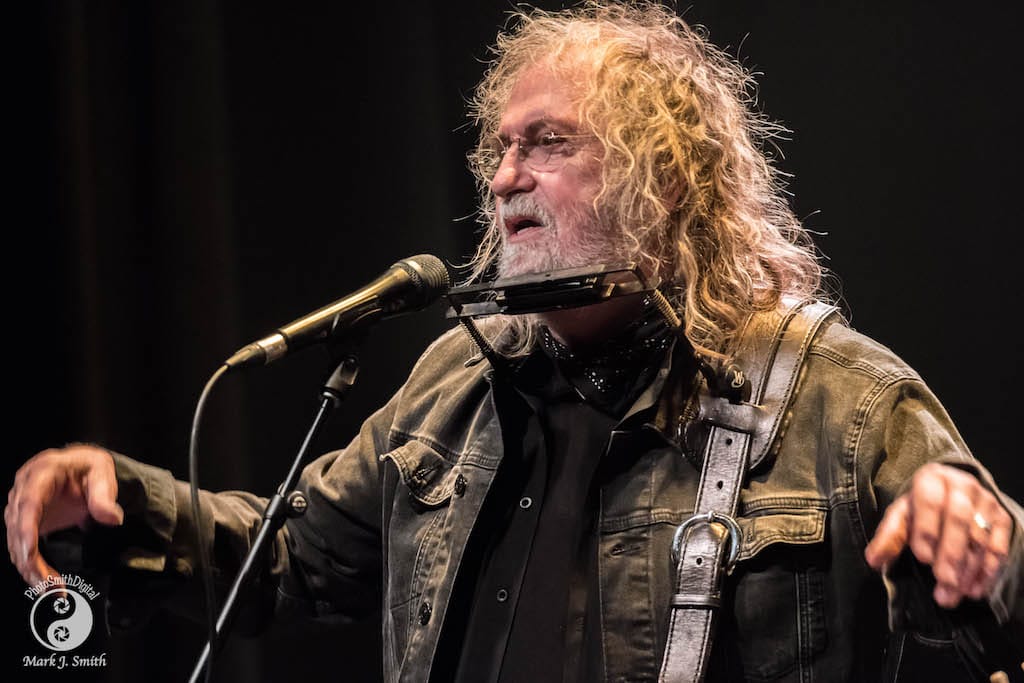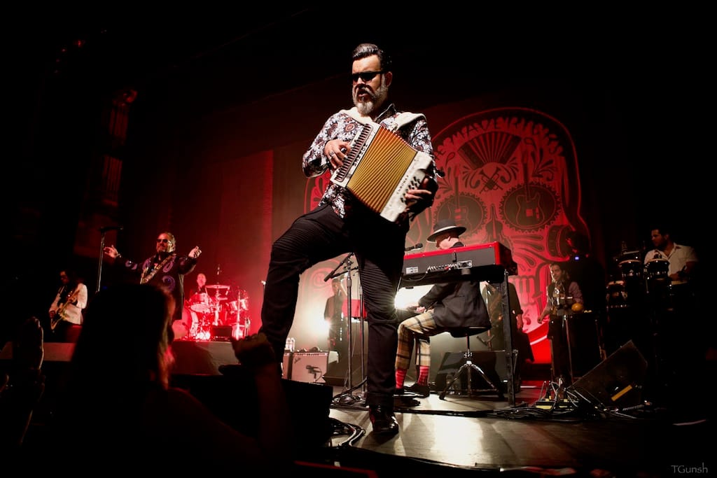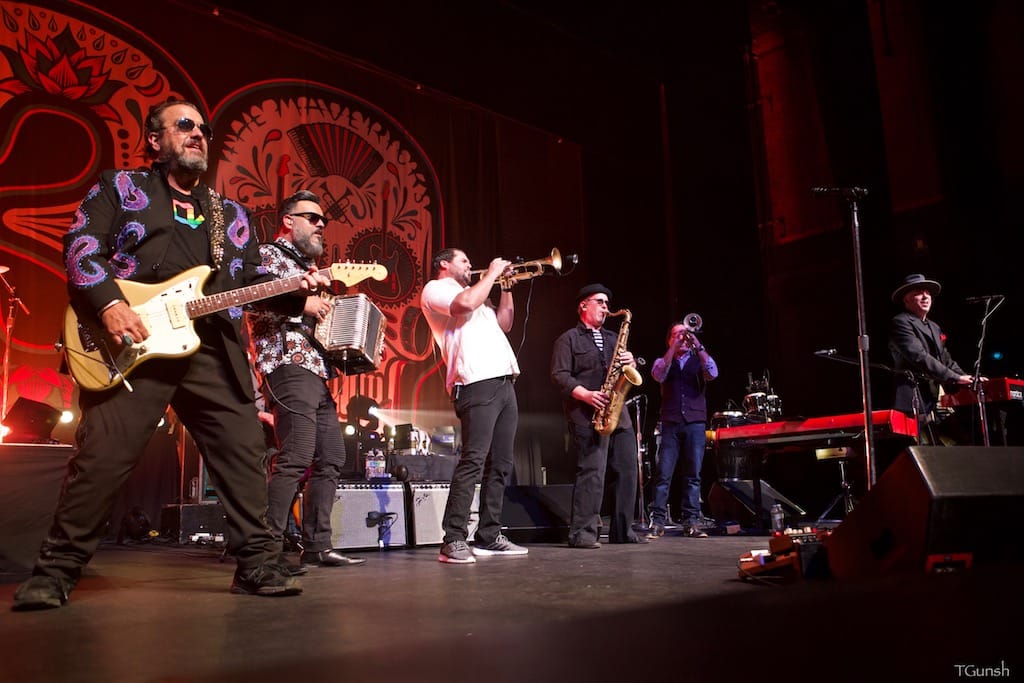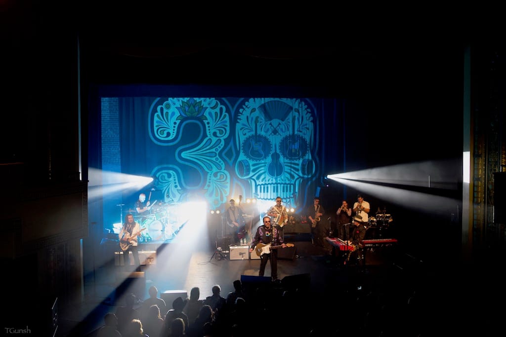 Last but not least is Boom’s photos of ND contributor Peter Dervin introducing Los Lobos at the Edmonds Center for the Arts in Edmonds, Washington, along with Los Lobos.