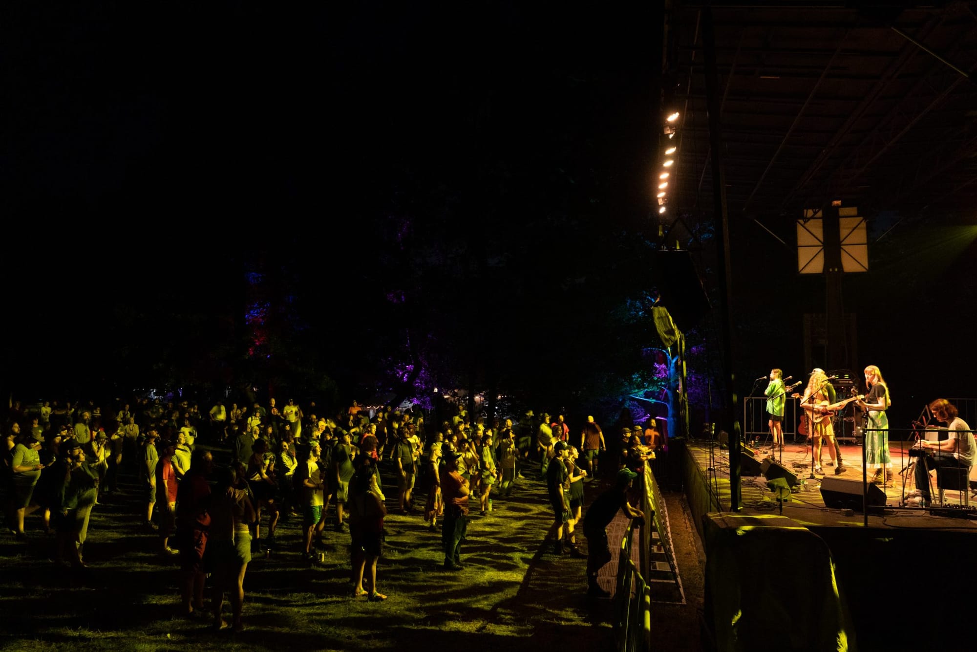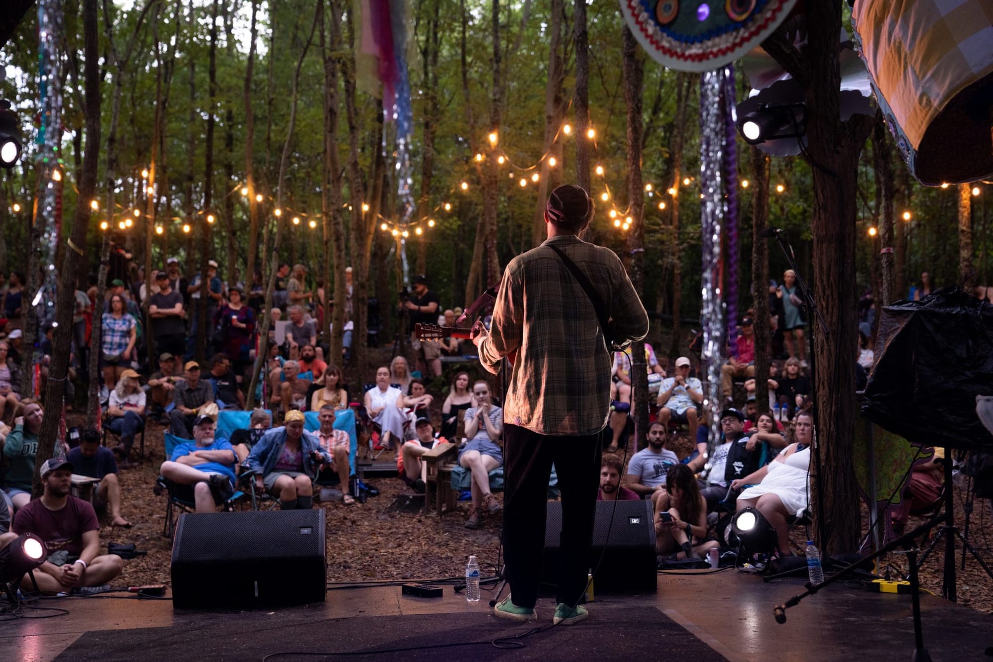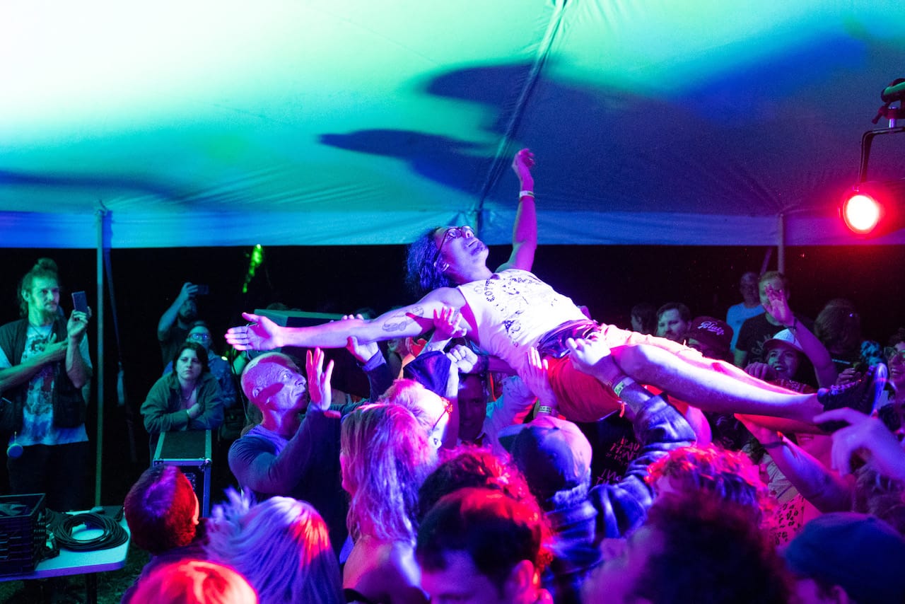 The view from the grounds is expansive and most evident when looking out from the main stage, called the Snow Fork Stage, with some woods off to the upper left that surround the Porch Stage. In those woods is the Creekside Stage, a smaller stage that hosts acoustic sets called the Sycamore Sessions (formerly the Gladden House Sessions), filmed by WOUB Public Media. (Past sessions are available here, with new ones coming next month.) A fourth, medium-sized stage, the Pond Stage, sits appropriately enough in front of a pond. Walking around the grounds, with alternating fields and woods, you get a real farm-like feel.