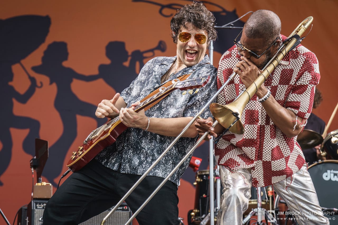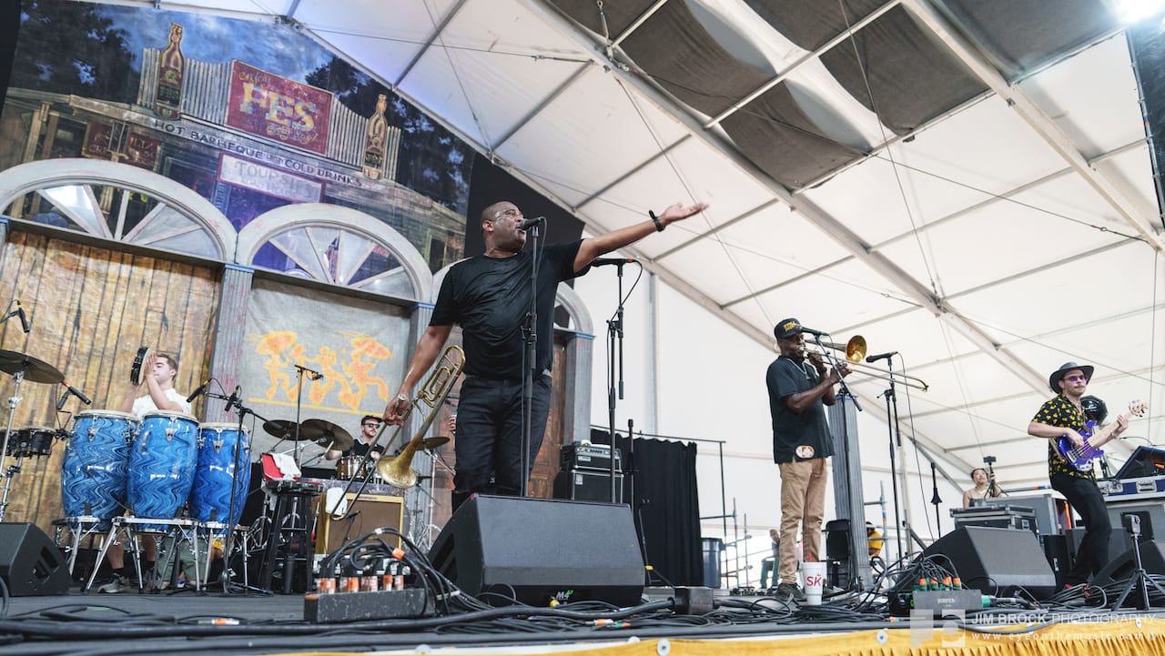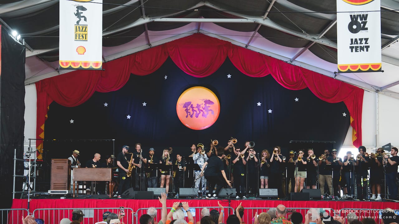 Jazz Fest is also Trumpet Mafia filling the Jazz Tent stage with 16 trumpets, five saxes, four trombones, two keyboards, and a full percussion section. It's the same stage where Allison Russell, Amy Helm, Leyla McCalla, Béla Fleck, Nitty Gritty Dirt Band, and Nickel Creek all sat comfortably alongside Vampire Weekend, The Killers, Juvenile, and Queen Latifah on the daily schedule. It's also the same stage that spotlights a different cultural/national traditon woven into the musical mélange every year. This year it was Columbia.