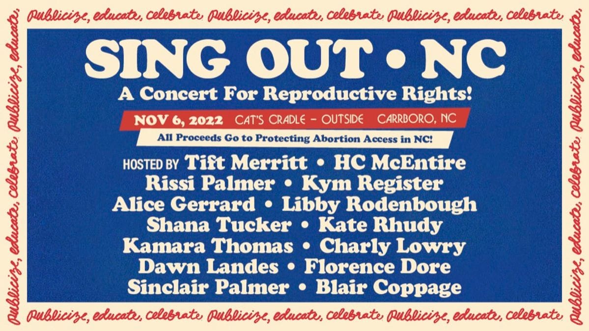 EDITOR’S NOTE: Singer-songwriter Tift Merritt is producing and hosting Sing Out NC, an election-time concert outside Cat’s Cradle in Carrboro, North Carolina, on Nov. 6 advocating for reproductive rights and featuring local artists including Alice Gerrard, Rissi Palmer, H.C. McEntire, Mipso’s Libby Rodenbough, and many more. Proceeds from the show will go to organizations working to protect abortion access in the state.